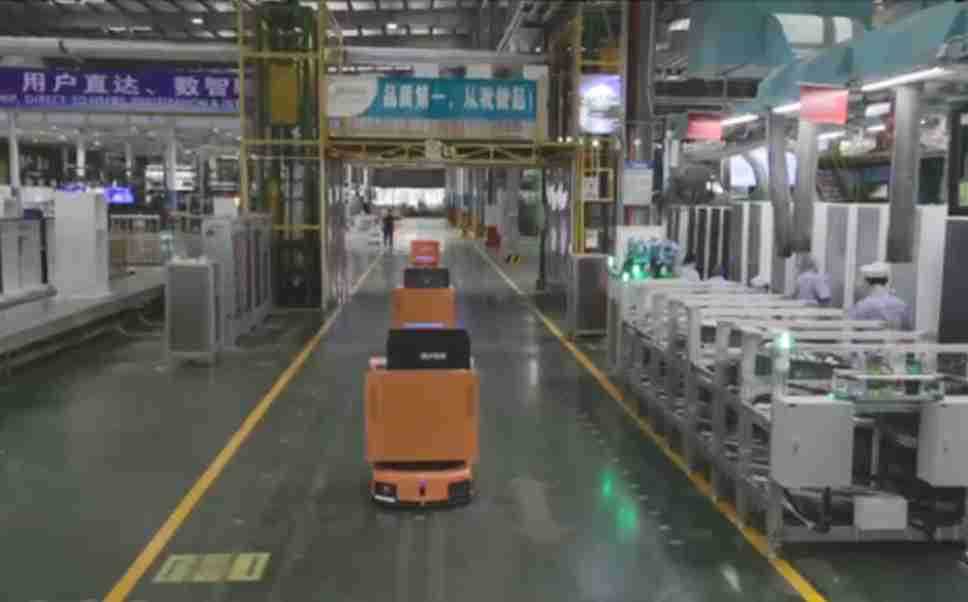 为车载冰箱物流配送打造的智能解决方案,,包含产中物流通过潜伏举升AMR搬运至线边,,产后成品物流智能仓储,,,,流程包含产中物流智能齐套入库,,线边安灯叫料AMR智能配送至线边,,,,成品入库、、出库,,通过无人堆高车机器人,,,,智能仓储管理替代人工作业管理,,,,实现更高存储、、更高效率、、、更具柔性化的解决方案。。